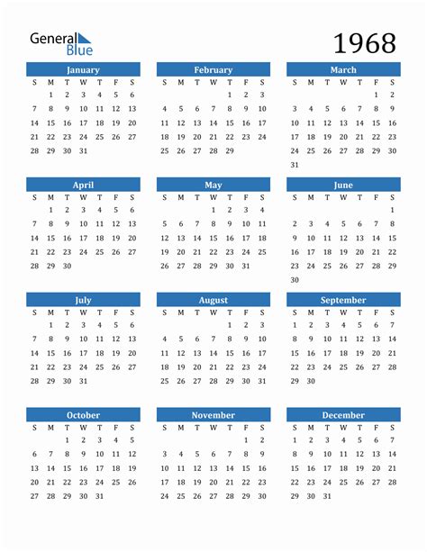 Calendar From 1968. Web quarterly calendar 1968 free and customizable. Yearly calendar showing months for the year 1968.