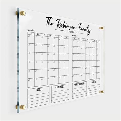Personalized Acrylic Calendar For Wall 2 Month Design dry Etsy