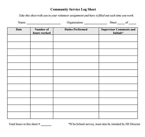 Community Service Hours Log Sheet. 10+ volunteer hours log templates; Using a volunteer hours log help you keeping a record of the hours you have contributed to a certain cause.