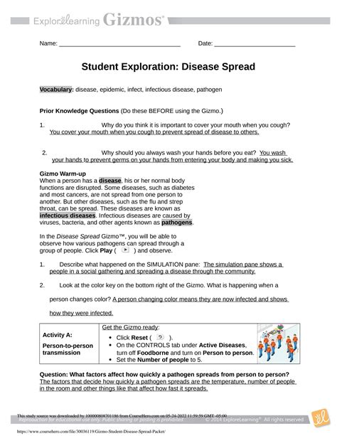 Disease Spread Gizmo Answer Sheet. Web so we don't spread the germs on our hand to our mouths so we don't get sick. Describe what happened on the simulation pane:.