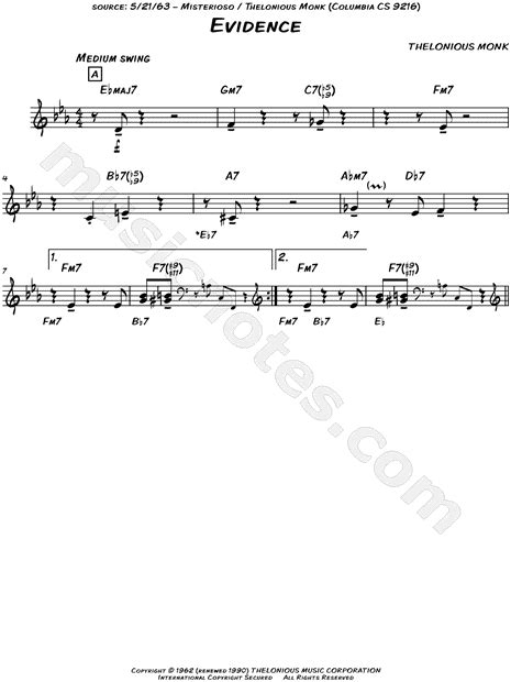 Web thelonious monk evidence solo piano. 1 part • 8 pages • 04:01 • feb 11, 2018 • 2,876 views • 14 favorites. Web evidence lead sheet t.