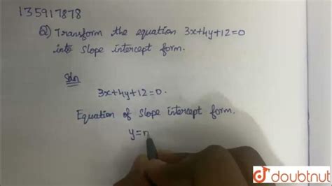 [Telugu] Transform the equation 3x+4y+12=0 into slope intercept form