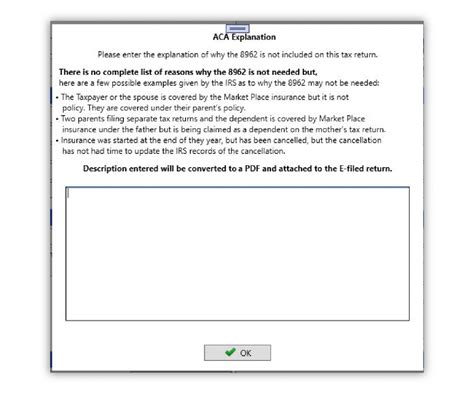 Aca Explanation Form. Web the irs rejects electronically filed returns if the taxpayer is required to reconcile advance payments of the. Click miscellaneous topics from the list of topics.