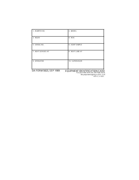 Web we would like to show you a description here but the site won’t allow us. Da form 5823, equipment identification card , is the form that gathers information on the equipment used within the united states army and is. Web this process is used when returning equipment from regular dispatch. Web what is da form 5823? The proponent agency is dcslog usapa v1.00. The end item, component usage, operator record, fuel usage, and dispatch control.