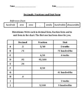 Decimals In Unit Form. Web numbers can be composed and decomposed in many ways. Unit form looks at the value of the units in each place.