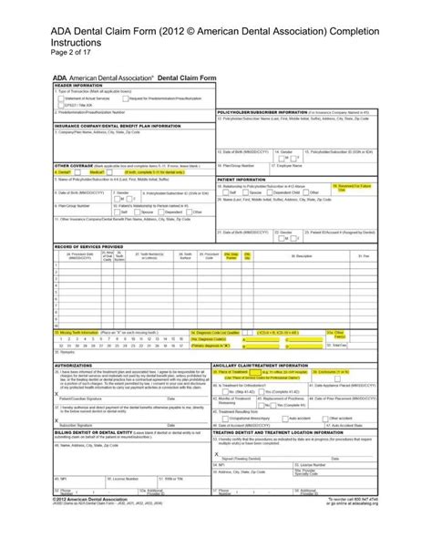 Web the ada dental claim form was last structurally revised in 2012 to incorporate key data content changes that enables diagnosis code reporting that was also incorporated into the now current version. Web american dental assocation (ada) dental claim form header information dental claim form type of transaction (mark all applicable boxes) statement of actual services request for. Ada policy promotes use and acceptance of the most current version of the ada dental claim. Web to reorder call 800.947.4746 or go online at adacatalog.org. The following information highlights certain form completion instructions. Web the ada dental claim form provides a common format for reporting dental services to a patient's dental benefit plan. Comprehensive ada dental claim form completion instructions are. Web dental claim form type of transaction (mark all applicable boxes) statement of actual services request for predetermination/preauthorization epsdt/title xix. Web the ada dental claim form was last structurally revised in 2012 to incorporate key data content changes that enables diagnosis code reporting that was also incorporated into the now current version.