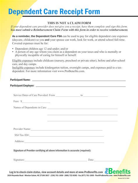 Fillable Dependent Care Claim Form printable pdf download