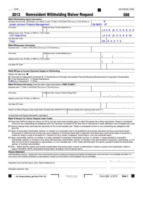 Web 588 part ii requester information check one box only. Web 588 part ii requester information check one box only. Web nonresident withholding allocation worksheet (form 587) use form 587 to allocate california source. Business name withholding agent payee authorized representative for. Many states have separate versions of their tax returns for. Web form 588 is a california individual income tax form.