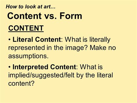 Form Vs Content In Art. Form is one of the seven elements of art which are the visual tools that an artist uses to compose a work of art. Form is the physical manifestation of the artwork.