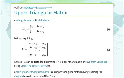A matrix is called an upper triangular matrix if it is represented in the form of; \ (\begin {array} {l}\left\ {\begin {matrix} a_ { {m}_n} , for\, m\leq n\\ 0, for\, m>0 \end. A matrix is called an upper triangular matrix if it is represented in the form of; Web schematically, an upper triangular matrix has the form \[ \begin{bmatrix} * && * \\ &\ddots& \\ 0 &&* \end{bmatrix}, \] where the entries \(*\) can be anything and every entry below the main diagonal is zero. Web a square matrix whose all elements below the main diagonal are zero is called an upper triangular matrix. Web mar 30, 2016 at 17:58 2 try to find a (singular) upper triangular matrix that is not in echelon form. Such a matrix is also called a. In this article, let us explore the different types of triangular matrices including upper triangular matrix and lower. Web upper triangular matrix definition. Aij = 0, ifi > j a i j = 0, i f i > j be a an upper.