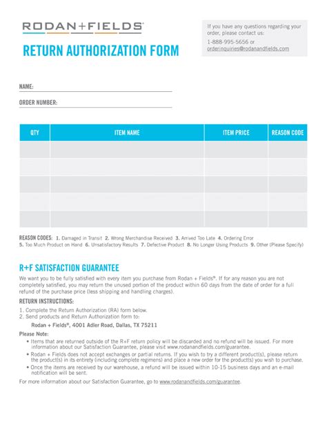 Rodan And Fields Return Form. Web if for any reason you are not completely satisfied, you may return the unused portion of the product within 60 days from the. Send products and return authorization form to:.