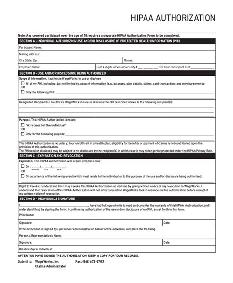 HIPAA Authorization Sample Form Free Download
