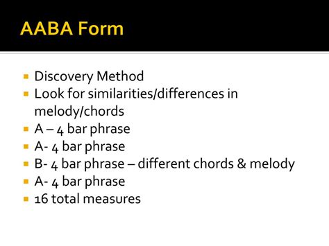 What Is Aaba Form. The 4 sections take 32 bars in total, so each one is 8 bars long. This song form is used in a variety of music.