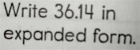 Write 36.14 In Expanded Form. 36.14 = (3 x 10) + (6 x 1) + (1/10) + (4/100) and the expanded form with decimals is: 3 in the tens place equals 30.