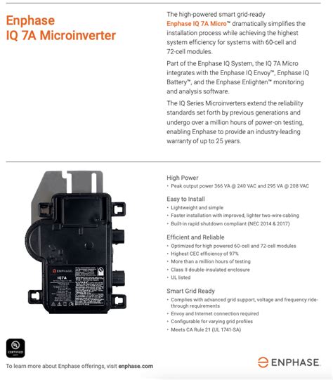 Iq7A Spec Sheet. Web review specifications for the enphase iq 7a microinverter.