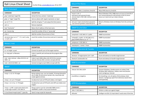 Kali Linux Cheat Sheet. Web even if kali linux includes powerful tools, that can often be used via the gui (graphical user interface), knowing some basic linux commands is highly recommended to do a bit more with your system and targets. Web kali linux cheat sheet about kali linux.