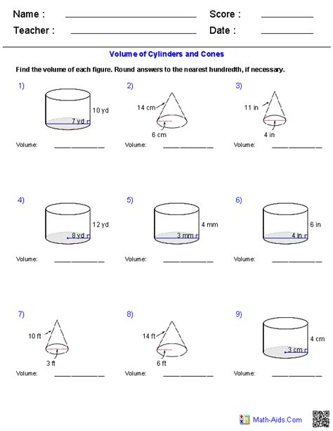 10 cm long, 4 cm wide, 10 cm. Web recall the formulas for the following two volumes: 8 cm long, 1 cm wide, 3 cm high. Web access our volume of a cylinder worksheets to practice finding the radius from diameter, finding the volume of cylinders with. V_ {\text {cone}} = \frac13 \pi r^2 h v cone = 31πr2h and v_ {\text {sphere}}. 8 cm long, 1 cm wide, 3 cm high. Web choose all answers that apply: