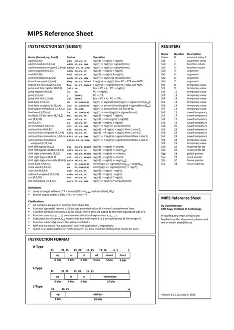 Mips Reference Sheet. Web a pdf document that lists the basic instruction formats, opcodes, and register operations of the mips assembly.
