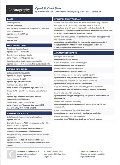 Openssl Cheat Sheet. Web a comprehensive guide to the basics and advanced features of openssl, a popular open source library for cryptography and.