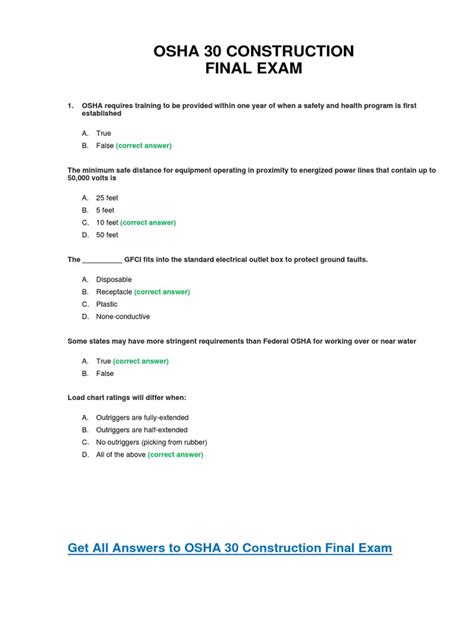 OSHA 10 Hour Construction Test Answer Key Care_Saf