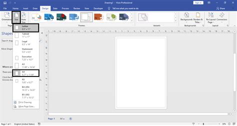 Change Visio Page Size. Go to design tab, open page setup dialog, under print setup, set your wanted printer paper size. The default units for the.