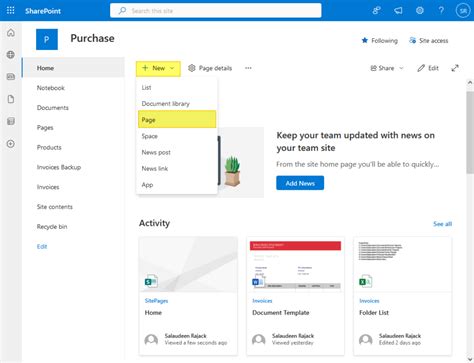 Create A Sharepoint Page. Web in this article. Go to the home page of the site.