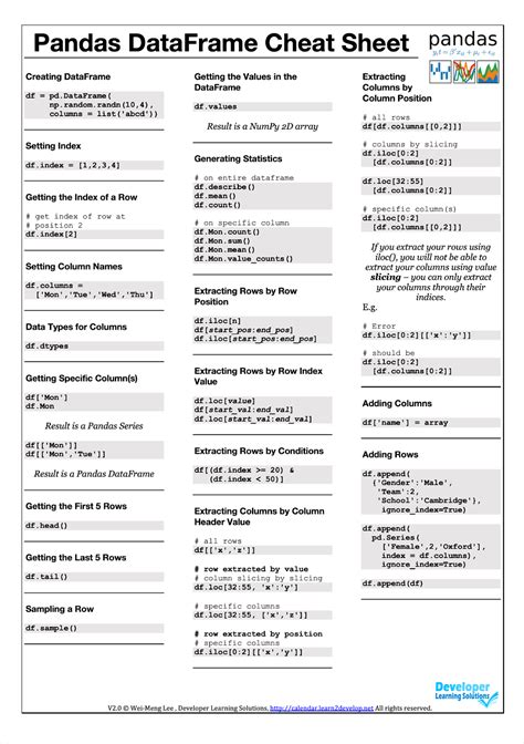 Pandas Dataframe Cheat Sheet. Web this cheat sheet provides a quick reference to the most common pandas commands, covering everything from data.