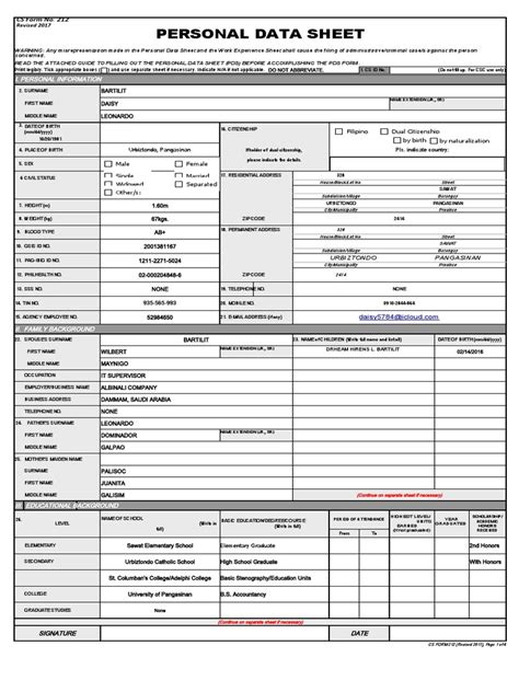 Soldiers Personal Data Sheet