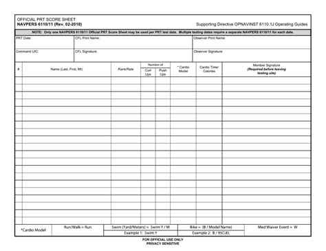 Prt Score Sheet. Web navpers 6110/10 official bca score sheet navpers 6110/11 official prt score sheet navpers 7421/1 overtime/compensatory.