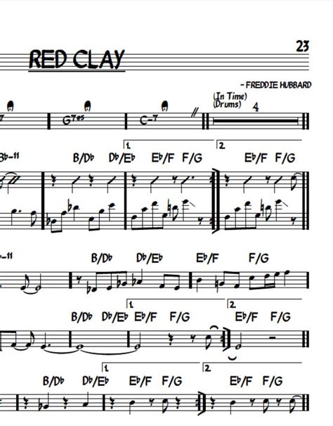 Web red clay freddie hubbard??.? 1 part • 2 pages • 02:36 • sep 25, 2023 • 34 views • 1 favorite. Solos, back to intro after solos œ œ˙ ‰œjbœœ bœœ™œ jbœ. Web free blowing cm7 a 7 g7 5 cm7 cm11 b m11 d 7sus4 e 7sus4 f7sus4 g7sus4 cm11 b m11 d 7sus4 e 7sus4 f7sus4 g7sus4.