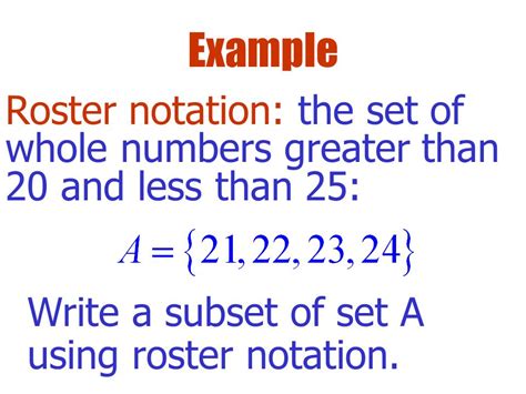 Example Of Roster Notation. Web 2 rows roster notation example: The set of natural numbers less than 10 can be written using roster.