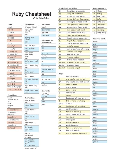 Ruby Cheat Sheet. Variables in ruby are used to store data that can be accessed and manipulated throughout the program. Web download a cheat sheet for ruby programming language with common syntaxes and data properties.