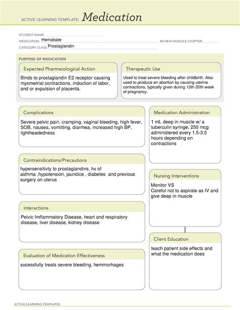 Hemabate Medication Template. Canada hemabate what is this drug used for? Monitor uterine activity (feq, duration, strength, tone;