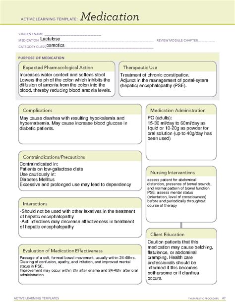 Web medication ____ lactulose _____ review module chapter _____ category class _____ active learning template: