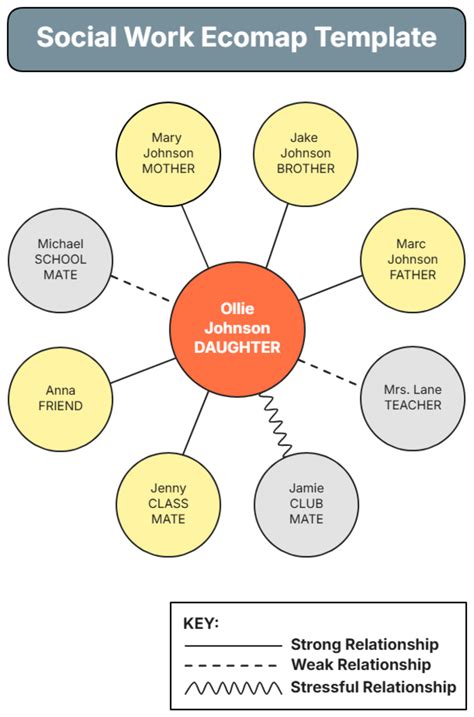 Web ecomap templates to understand and discover social dynamics. Web an ecomap is a key visual aid in social work, aimed at mapping and understanding a client's personal and social connections. Web here’s our example of an ecomap social works pdf template for social workers filled with answers from a fictional client.