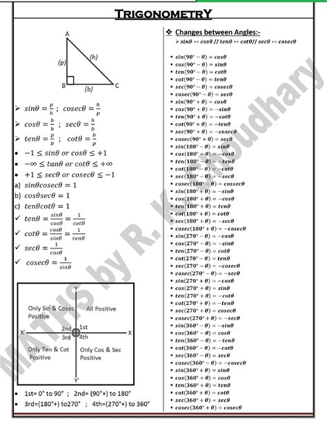 Trigonometry Formula Chart