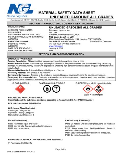 Unleaded Gasoline Safety Data Sheet. Web recommended use of the chemical and restrictions on use: Web safety data sheet section 1.