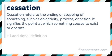 Web what is the plural of cessation? Halt, ending, conclusion, end, closure, close, termination,. What is the noun for. Web words related to cessation are not direct synonyms, but are associated with the word cessation. (law) the cessation of cohabitation of man and wife. What is the adjective for cessation? Browse related words to learn. What is the adverb for cessation?