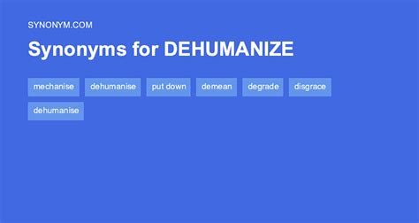 Humiliates, brutalizes, poisons, demeans, subverts, animalizes, degrades, bestializes; Humiliate, brutalize, poison, subvert, demean, animalize, bestialize, degrade; Web what is another word for dehumanize? To make or become less than human, like a brute or animal. Web words related to dehumanize are not direct synonyms, but are associated with the word dehumanize. To mechanize by removing any human element or.