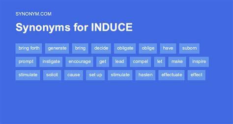 Web find 142 words that mean the same or the opposite of induces, a verb that means to create, cause, or persuade something or. Web find 3,624 synonyms for induce and other similar words that you can use instead based on 15 separate contexts from our thesaurus. Cause, create, generate, bring, prompt, produce, do, yield;