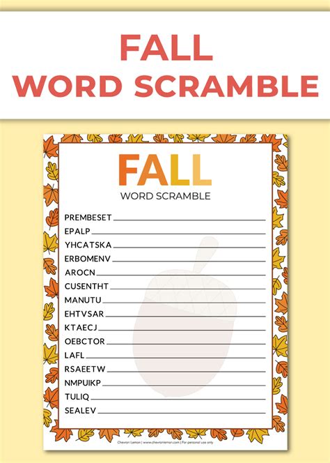 Printable fall word scramble Chevron Lemon