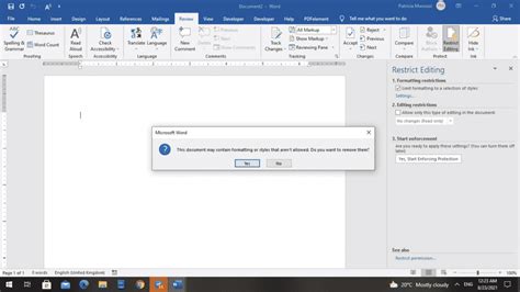 How to restrict formatting changes in Microsoft Word