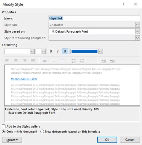 Hyperlink Formatting In Word. Web how to format hyperlinks in microsoft word changing the color of the hyperlink. With the default colors of a hyperlink being blue or purple, here are the steps to.