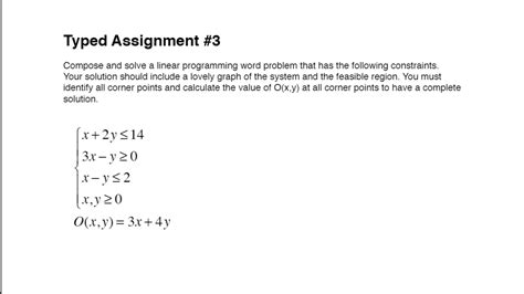 Linear Programming Word Problem. Web a linear programming problem involves finding the maximum or minimum value of an equation, called the objective. Find out the omitted constraints, the.