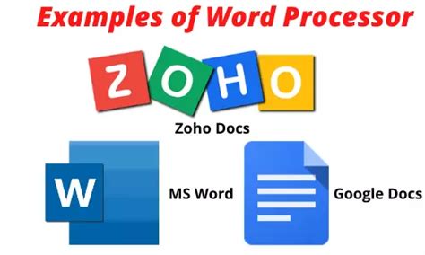 Web what are the 5 examples of word processor? Wordpad notepad wordperfect microsoft word lotus word pro