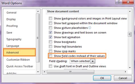 Show Codes In Word. In word 2010/2013, click file tab , and then click options. Check the show field codes instead of.