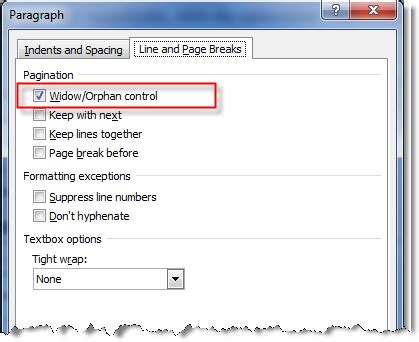 Microsoft word widow orphan setting lopcoop