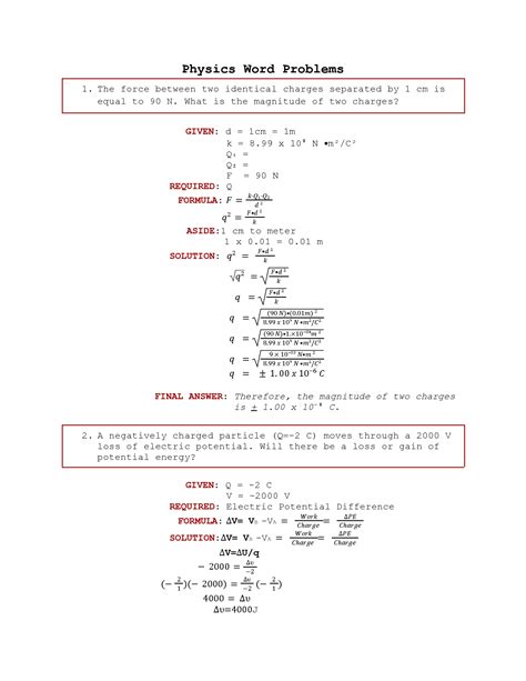 Word Problems Physics. Web kinematic equations relate the variables of motion to one another. Each equation contains four variables.