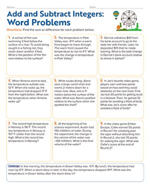 Word Problems With Adding And Subtracting Integers. Improve your math knowledge with free questions in add and subtract integers: Web the set of integers consists of zero, the positive natural numbers, and their additive inverses.