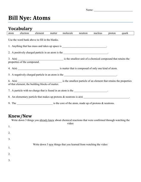 Bill Nye Atoms Worksheet. Web bill nye atoms and molecules before we watch the video, read the questions to yourself so that you know what to be.